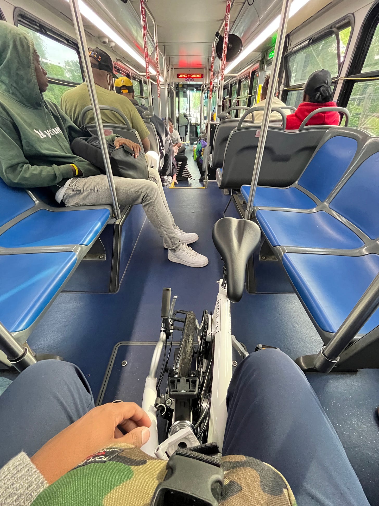 The last one is near and dear to me as a car-free father and bus rider. There is no space on the bus for a stroller. There has to be a way to rethink how our buses are configured to consider families who rely on bus service. Fewer seats could add space, but rotating a few seats along the sides of the bus could also open space things up. We do this with light rail and heavy rail why not do this for buses?