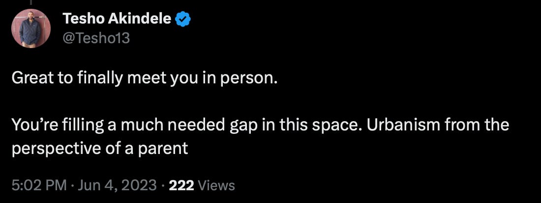 I say all of this to say, over the coming months I hope to do just this in my free time under “density dad.” Nothing major but finding ways here and there to collaborate with developers, placemakers, and city officials to speak up for families in the built environment.